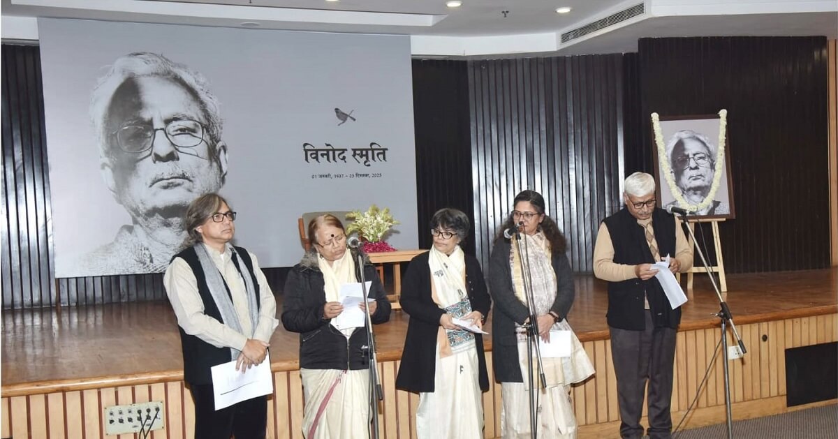 नई दिल्ली। भारतीय ज्ञानपीठ पुरस्कार और साहित्य अकादेमी पुरस्कार से सम्मानित कवि-कथाकार विनोद कुमार शुक्ल की स्मृति में गुरुवार शाम सभा का आयोजन किया गया। राजकमल प्रकाशन और रज़ा फ़ाउंडेशन के संयुक्त तत्वावधान में आयोजित यह सभा इंडिया इंटरनेशनल सेंटर में हुई। सभा का आरम्भ वरिष्ठ साहित्यकार अशोक वाजपेयी के वक्तव्य से हुआ। इसके बाद ‘रसचक्र’ और ‘चेमेगोइयाँ’ समूहों की ओर से विनोद कुमार शुक्ल की कविताओं की पाठ-प्रस्तुति दी गयी और वंदना राग ने उनके उपन्यास से अंशपाठ किया।