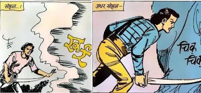 कॉमिक में एक प्रसंग है जब रोहन, सोहन और मोहन गुफा में घुसते हैं। वहाँ ये तीनों अलग अलग मुसीबतों से जूझते हैं। लेकिन फ्रेम में दो बार सोहन ही लिखा गया है। यह प्रिंटिंग की गलती है। एक बार रोहन और एक बार सोहन होना चाहिए था।